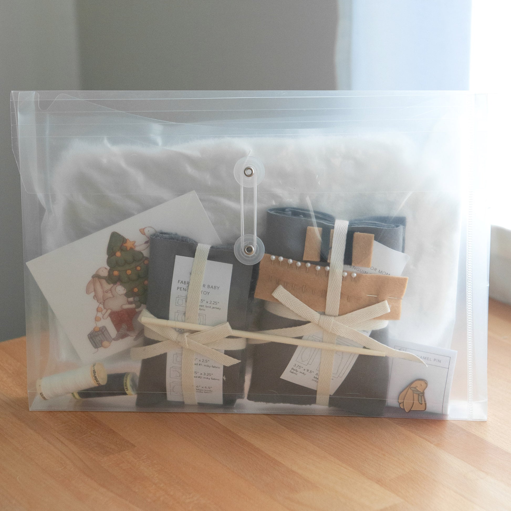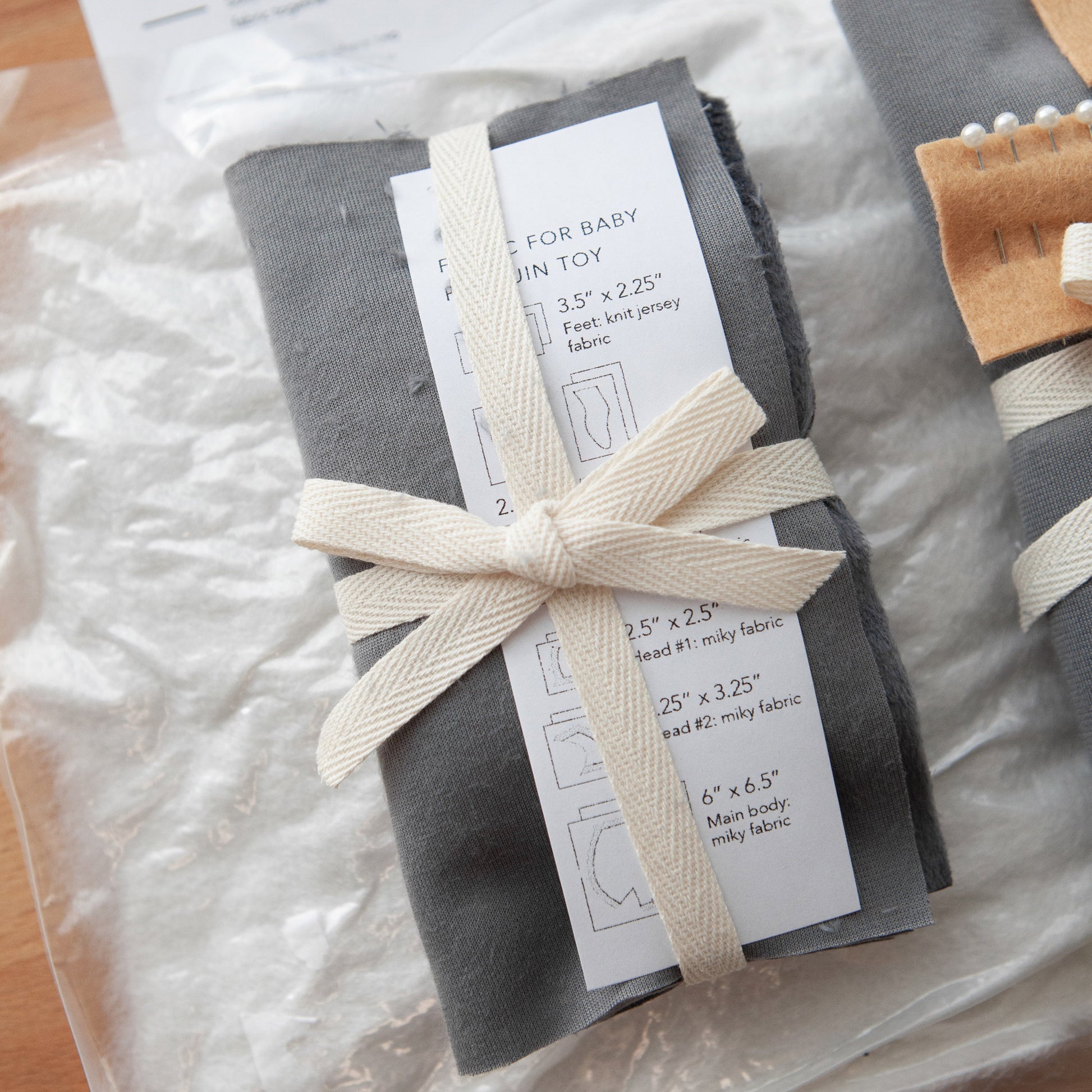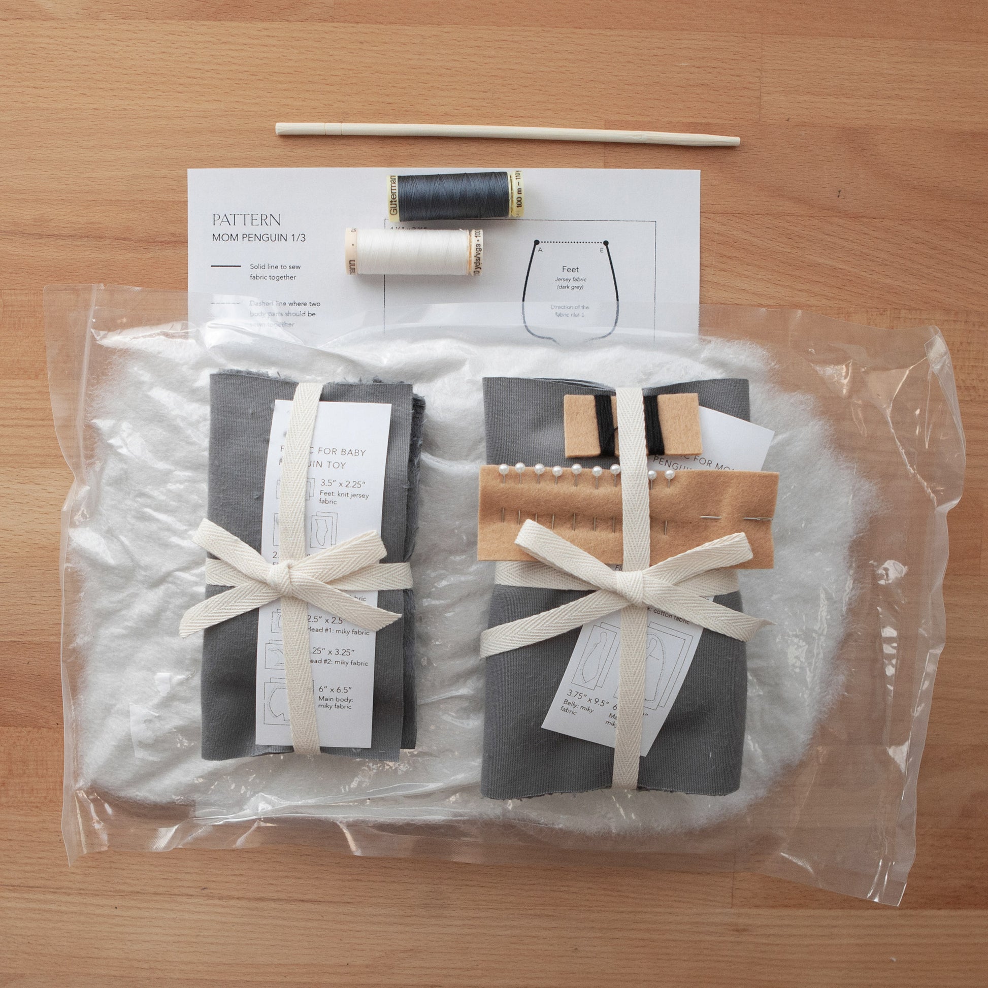This is the first kit to be designed by toysbypolina. It arrived beautifully packaged. Everything individually packed in labelled envelopes. Plenty toy stuffing included. Clear sewing pattern and instructions appear straightforward. Looking forward to sewing the penguins.