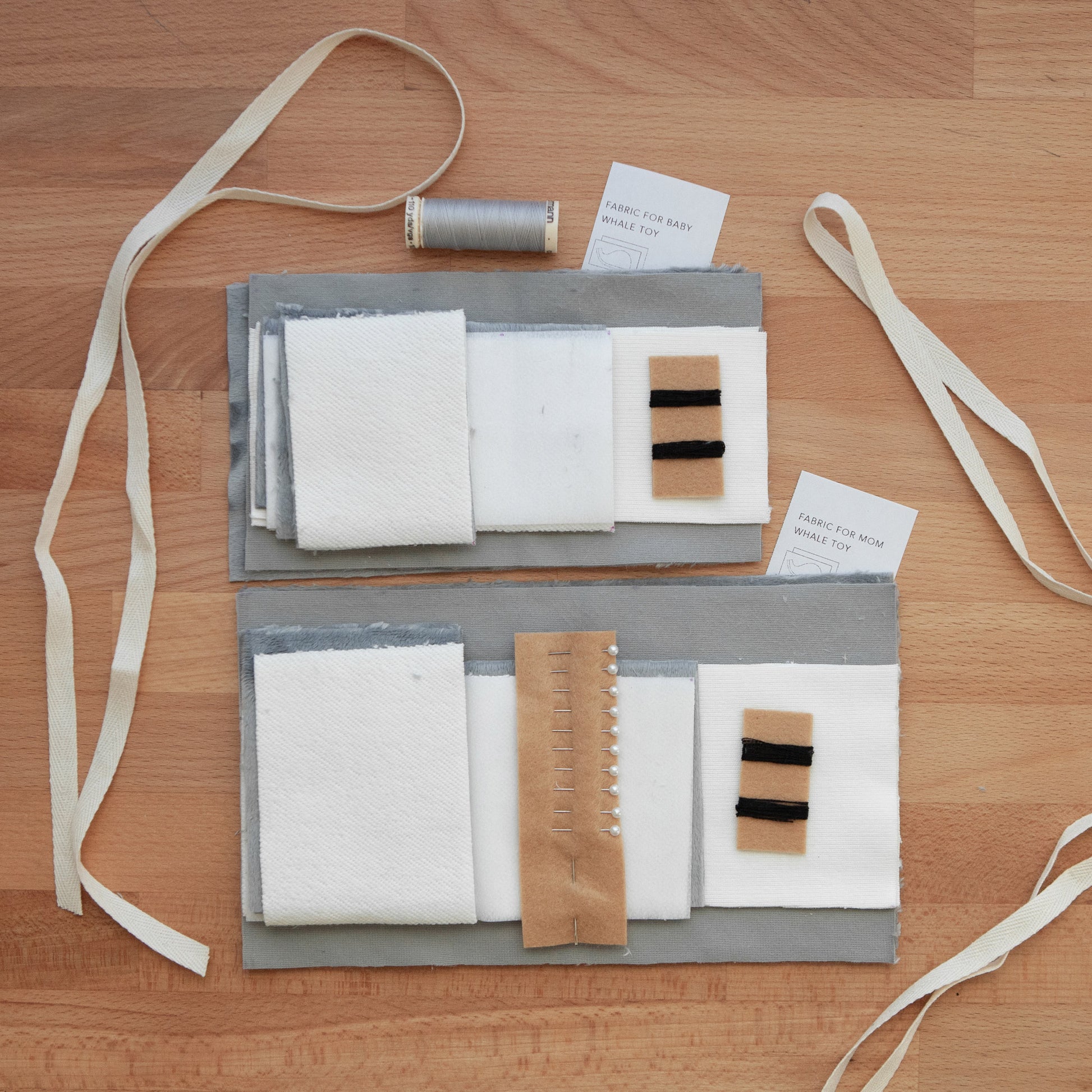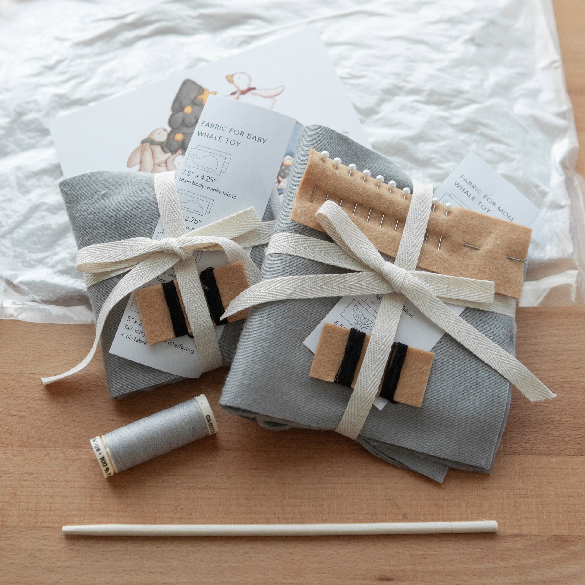 Toy Sewing Kit includes all materials you need to create two whales toys (Mom and Baby):